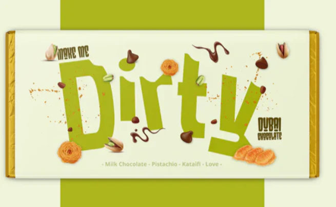 The Dirty Dubai-Style Chocolate Bar is a handcrafted 230g luxury treat made with silky Belgian milk chocolate, rich Italian pistachio cream, and a crisp layer of golden kataifi pastry. It’s thick, creamy, and packed with texture – the kind of chocolate bar that’s made to be shared, gifted, or devoured.